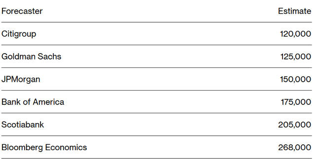 彭博经济学家Anna Wong和Estelle Ou在1月9日的预测报告中表示:“12月份的非农数据可能会很强劲,我们承认这是劳动力市场改善的一个令人鼓舞的信号。尽管如此,我们仍不会满怀信心地得出劳动力市场再度升温的结论。”